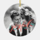 Capture los recuerdos maravillosos de la familia con un ornamento de cerámica personalizado. Añada sus fotos preferidas, imágenes y mensaje personal a ambos lados de este ornamento. Un filamento del hilo del oro hace fácil exhibir este recuerdo fantástico.