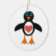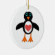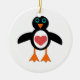 Este adorno cuenta con un personalizado adorable de un pingüino con ojos grandes, un pequeño pico y pies lindos. El pingüino tiene un gran corazón de amor rojo en medio de su vientre y las alas están abiertas y listas para darle a alguien un gran abrazo.