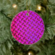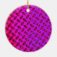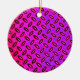 Un patrón repetitivo se extiende a través de un fondo psicodélico púrpura y rosa en este adorno redondo. ¡Espéralo por un divertido efecto hipnótico!