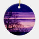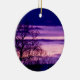 Silueta hermosa del árbol contra un cielo y una puesta del sol imponentes con tonalidades púrpuras y rosadas. Modifique para requisitos particulares para añadir su nombre, iniciales o para poseer el texto.