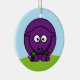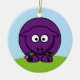 Una linda oveja personalizado morada en un adorno redondo. El reverso del adorno muestra el extremo de la cola del cordero.