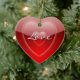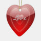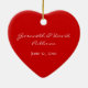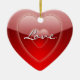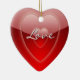 Bonito adorno decorativo en forma de corazón rojo, con gráficos de rojo brillante en corazones rojos y texto leyendo Amor. Al revés hay un rojo sólido y un texto en blanco. Personalice añadiendo sus nombres y fecha de boda para un adorable adorno romántico que puede usar en el árbol de Navidad o en cualquier otro lugar que desee durante todo el año.