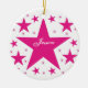 Colección de superestrellas Round Ornament en magenta con una cascada de estrellas divertidas. Este diseño de estrellas lindas y jovencitas sería un gran regalo para cualquier hija, sobrina u otra joven en tu vida. Esta estrella divertida haría un adorable adorno de keepsake añadiendo un nombre y/o una frase personalizada.