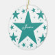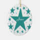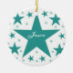 Colección de superestrellas Round Ornament en verde azulado con una cascada de estrellas divertidas. Este diseño de estrellas lindas y jovencitas sería un gran regalo para cualquier hija, sobrina u otra joven en tu vida. Esta estrella divertida haría un adorable adorno de keepsake añadiendo un nombre y/o una frase personalizada.