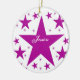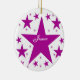 Colección de superestrellas Round Ornament en violeta con una cascada de estrellas divertidas. Este diseño de estrellas lindas y jovencitas sería un gran regalo para cualquier hija, sobrina u otra joven en tu vida. Esta estrella divertida haría un adorable adorno de keepsake añadiendo un nombre y/o una frase personalizada.