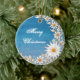 Ornamento del navidad - luna creciente del cielo nocturno azul en margaritas con el lado positivo