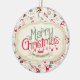 este ornamento redondo hermoso tiene un fondo ilustrado con los gráficos de vector de los adornos del navidad, y un texto en el centro que dice "Felices Navidad 2017 y una Feliz Año Nuevo."