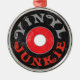Este ornamento del día de fiesta de la diversión está para la gente que ama discos de vinilo. Lee al "drogadicto del vinilo" en una fuente retra, y se forma como un expediente.