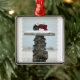 Tractor rojo en el ornamento del cuadrado de la nieve. Regalo perfecto para los colectores del granjero o del tractor.