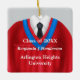 Ornamento personalizado de doble cara para mantener la graduación, decorado con colores de traje y corbata de la escuela roja y azul para ese hombre especial. Hay muchas otras combinaciones de colores disponibles para hombres y mujeres. Edite texto personalizado delante y atrás en el sencillo editor de texto Zazzle.