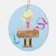 Personalice y ornamento anticuado del navidad, chica rubio lindo del gimnasta que hace una fractura en una cámara acorazada fijada en un fondo azul de los lunares con una cinta #1. Un regalo del navidad de la maravilla seguro que se atesorará durante muchos años para venir.