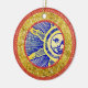 Adentro, el ornamento del árbol de Jesse es el "sol" del árbol de Jesse. Un ilustracion de madera de estilo medieval del sol. Ilustracion colorido para un calendario de avance de Jesse Tree. Giro de golosinas hacia atrás. Acento de aspecto de Relieve metalizado dorado