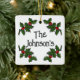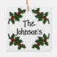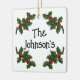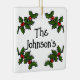 Las ramas grises con bayas rojas se encuentran en las cuatro esquinas, enmarcando el texto en el centro. Un lado dice "Feliz Navidad", el otro "El Johnson". Ambas partes pueden tener texto personalizado.