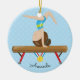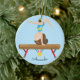 Personalice y ornamento anticuado del navidad que ofrece a un gimnasta trigueno lindo que hace un soporte principal en un haz de balanza fijado en un fondo azul de los lunares con una cinta #1. Un regalo del navidad de la maravilla seguro que se atesorará durante muchos años para venir.