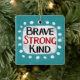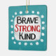 "Brave Strong Kind" es una bonita cita inspiradora o motivacional con una forma de acento blanco rodeada de puntos caprichosos de textura blanca.