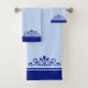 Ornamento vectorial de moda y franjas azules reales sobre azul claro. Elegante y moderno conjunto de toallas.
