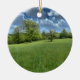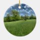 Un rico paisaje verde, con un campo de césped alto rodeado de árboles, bajo un cielo azul profundo lleno de nubes. Un árbol muerto enredado se para solo en medio del campo. Tomé la foto original en la granja de árboles de Navidad de mi abuelo en la ruta panorámica Blue Ridge cerca de Fancy Gap, Virginia. El cielo gris fue reemplazado por uno generado por computadora, y el paisaje se enriqueció con mapeo de tonos y efectos de Orton.