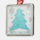 Decoren su árbol de Navidad esta temporada navideña con un Verde azulado y festivo adorno navideño. El diseño ornamental incluye un vibrante y festivo árbol de Navidad adornado con caídas de copos de nieve grises y blancos con un saludo de vacaciones. También hay artículos de regalo y de vacaciones disponibles con este diseño.