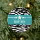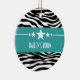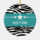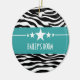 Moderno y moderno restaurante Sassy Star Zebra Ornament con fondo de cebra en blanco y negro de moda y un atrevido borde turquesa adornado con un divertido motivo estrella. Este diseño ondulado puede ser personalizado con el texto personalizado de su elección. Haga clic en "Personalizar" para encontrar más opciones de personalización.