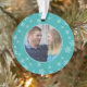Ornamento verde azulado de fotos navideñas con cop