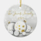 .: Las vibraciones clásicas y tranquilas de los Navidades se capturan con este adorno de adornos. Con imágenes de ornamentos dorados y blancos sobre un fondo blanco con hermosas estrellas .: Personalizar todo el texto, ¡delante y atrás! .: Hay artículos de coordinación disponibles, al igual que toneladas de otros artículos para Navidades!
