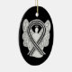 El ornamento de ángel de la guarda presenta la pintura de un ángel de cinta blanco y negro que representa la conciencia para acabar con el racismo. El arte de las cintas de ángel de la conciencia en blanco y negro se puede personalizar con mensajes personalizados para hacer ornamentos de gran causa o pendantes para recaudadores de fondos, Navidades de concientización o regalos de vacaciones, u otros eventos o ocasiones especiales.