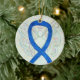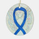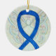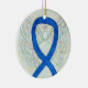 El adorno de ángel de la guarda presenta la pintura de un ángel de cinta azul de la conciencia. El arte de la cinta de ángel de la conciencia azul puede ser personalizado con mensajes personalizados para hacer ornamentos de gran causa o colgantes para recaudadores de fondos, Navidades de concientización o regalos de vacaciones, u otros eventos o ocasiones especiales.