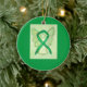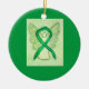 El ornamento de ángel de la guarda presenta la pintura de un ángel de cinta de conciencia verde. El arte de la cinta de ángel de la conciencia verde se puede personalizar con mensajes personalizados para hacer ornamentos de gran causa o colgantes para recaudadores de fondos, Navidades de concientización o regalos de vacaciones, u otros eventos o ocasiones especiales.