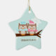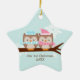 Ornamentos navideños de personalizable con una adorable pareja de búhos en suaves colores pastel. ©Goodness & Fun