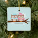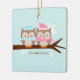 Ornamentos navideños de personalizable con una adorable pareja de búhos en suaves colores pastel.