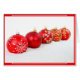 Cinco adornos decorados sobre una superficie nevada. Ricos y simples a la vez. Imagen de dominio público.