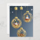 Navidades dorados y rojos, bautizos y adornos elegantes adornados con cintas, crean una decoración festiva y refinada en un fondo azul oscuro con sutiles copos de nieve.