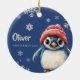 Traiga el gusto a su árbol de vacaciones con este adorno navideño personalizado, parte de los encantados Cuentos de Invierno. Con un pingüino Navidad vestido con un gorra acogedor con un fondo azul festivo y delicados copos de nieve, este adorno es un regocijo reconfortante para los niños, familias o amantes de los animales. Personalizar con nombre y año para crear una decoración única que será apreciada en los años venideros. Perfecto como talón de medias, etiqueta de regalo o herencia familiar ♡ Ver más en esta tienda aquí: https://www.zazzle.com/store/north_pole_boutique ♡