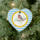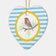 El personalizable Robin Redmama adorna cerámica o metálica con un lindo pechuga rojiza en un círculo amarillo y un patrón rayas azules y blancas. Un gran regalo para los amantes de las aves y los animales, no sólo para los Navidades.