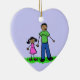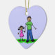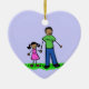 Padre e hija se toman de la mano. La camisa de papá decía "papá" y el vestido de la niña decía "yo". La familia tiene pelo negro y piel de bronceado. La imagen viene en varias versiones de color. Tampoco hay una versión de dibujo de color. Personaliza el ornamento de papá e hija con nombres de familia o un mensaje personal para un padre especial o un regalo del botón de papá! ¡Puedes hacer adornos familiares de personalizados para un regalo especial del Día del Padre, nuevo papá, Reunión familiar u otros regalos de arte familiar personalizados!