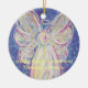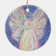 El arte muestra un suave ángel pastel sobre un suave fondo nocturno estrellado azul. La imagen fue pintada inicialmente con acrílico y terminada en pastel para crear un color luminoso suave. Esta es una gran imagen de ángel para las vacaciones como Navidades o Año Nuevo. Personalice con su propio texto e imágenes usando la opción "Personalizar". Haz regalos, encantos y otros ornamentos personalizados de ángel de la guarda. Ingresos de apoyo DonnaBellas Angels a 501(c)3 sin fines de lucro.