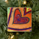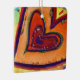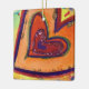 Un pequeño corazón morado está cerrado por un corazón rojo que está dentro de los corazones naranjas. Los corazones están delineados en verde, púrpura y rojo. El fondo de la acuarela es un amarillo suave con puntos de confeti coloridos. Una capa clara de oro y purpurina rojo traza los bordes del corazón. Pintura de detalles de una obra de arte Inspiradora de Word "Happy". Esta es una gran imagen de corazón de amor para las vacaciones como Navidades o Año Nuevo. Puedes personalizar este inspirador adorador de corazones de arte con tu propio texto e imágenes usando la opción "Personalizar". Haz regalos personalizados al corazón, encantos y otros adornos decorativos. Ingresos de apoyo DonnaBellas Angels a 501(c)3 sin fines de lucro. ¡Haz regalos de arte de corazón para el amor personal! DonnaBellas Angels es una organización sin fines de lucro cuya misión es ofrecer arte inspirador con temática curativa al público. Más información en donnabellasangels.org.