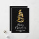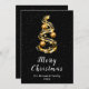 Esta elegante tarjeta de vacaciones de moda puede ser personalizada con su nombre familiar. El diseño incluye un árbol de Navidad de cinta dorada y negra con baudillos. El texto combina el guión manuscrito y las fuentes sans serif modernas para un aspecto elegante y sofisticado. La caída de la nieve, los copos de nieve y las chispas dan un toque festivo y mágico.
