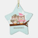 Los pares adorables de búhos se encaramaron en una rama.