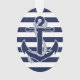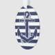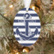 Ornamentos navideños náuticos (acrílico oval) con ancla y rayas blancas y azul marino. Mide 2.37 pulgadas por 3.32 pulgadas y está impreso en ambos lados.