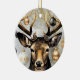 Ornamentos Navidades de invierno venado - Ornamento de Personalizable Añada un toque único a su decoración navideña con este personalizable "venado de Navidades de invierno". Con un impresionante diseño de un majestuoso ciervo adornado con elegantes ornamentos dorados y negros, este toque es perfecto para añadir un toque rústico y moderno a tu árbol de Navidad. El frente muestra el hermoso diseño de ciervos, mientras que el reverso ofrece la oportunidad de personalizar con fotos familiares, imágenes o un mensaje sincero. Un hilo de hilo dorado hace que sea fácil de colgar, lo que hace de este adorno un regalo ideal o una adición especial a su decoración de vacaciones que se puede apreciar en los años venideros.