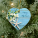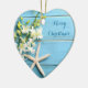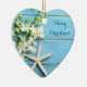 Ornamentos navideños de temática playera (cerámica del corazón) con estrellas de mar, orquídeas y texto de personalizable.