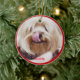 Ornamentos de Navidad de perro con texto de personalizable y foto - puedes agregar tu foto y nombre de perro. Mide 2.87 pulgadas y pesa 1.4 onzas. También se puede encontrar un diseño similar con foto personalizada y texto en otros ornamentos - metalizado premium cuadrado, pewter copo de nieve o en ornamento de bola de cerámica.