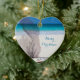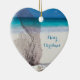 Ornamentos navideños de playa (cerámica cardíaca) con texto de coral y personalizable.