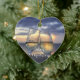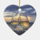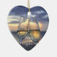 Ornamentos navideños de playa (cerámica del corazón) con puesta de sol y texto de personalizable.
