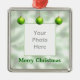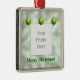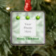 3 Ornamentos verdes de Navidad sobre un fondo sucio. El texto del personalizable dice "Feliz Navidad".