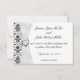 Hermoso patrón de damasco negro y blanco ornamentado con acentos de cinta blanca, y adornado con un corazón plateado con Diamantes de imitación falsos... Son geniales para cualquier ocasión como Bodas, duchas, aniversarios, etc. Personalízalo añadiendo tu propio texto.. Por favor, visita mi tienda para emparejar sobres, estampillas, confirmaciones de disponibilidad, etiquetas, tarjetas de número de mesa, bolsas de la madre de la novia y más!