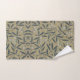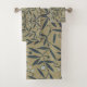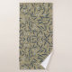 Ornate floral pattern with dark blue vines and leaves on a beige background. White circular flowers with gold accents add elegance and contrast.