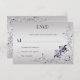Esta es una nueva versión de uno de mis RSVP más vendidos. Ornate Morple Swirls sobre un fondo plateado. He actualizado el diseño y la redacción de la invitación. Es tan fácil personalizar esto con tu propia información. Hay productos a juego - por favor vea mi colección "Purple and Silver Ornate Swirls Boda" (http://bit.ly/2ro2w9W).