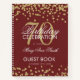 Una elegante plantilla del Libro de Invitados de la Fiesta de Cumpleaños 70 con Confetti Purpurina de Oro sobre el diseño de Borgoña y texto fácil de personalizar.